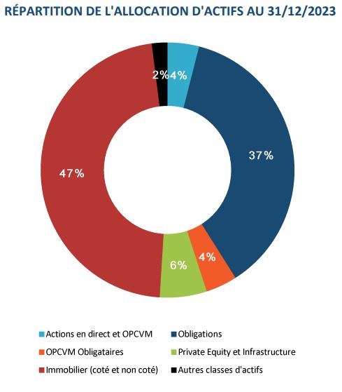🔎 En effet, la poche obligataire est passée de 70% à 41% (si l’on inclut les OPCVM obligataires), alors que l’immobilier représente près de la moitié du fonds. Les gestionnaires annoncent rester attentifs aux opportunités liées à l’évolution des politiques monétaires et des taux d’intérêt. Par ailleurs, une analyse ESG est appliquée à l’ensemble du portefeuille.