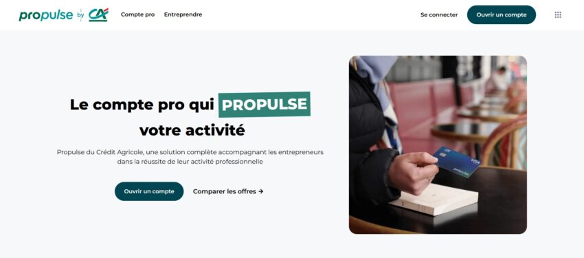 | Propulse by CA | 8€ / mois | Un compte pro en ligne qui vous accompagne dans votre création d’entreprise | En savoir plus |
