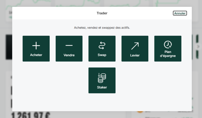 Une fois que vous êtes dans votre espace client Bitpanda, vous appuyez sur “Trader” puis sur “Levier”, comme ci-dessous :