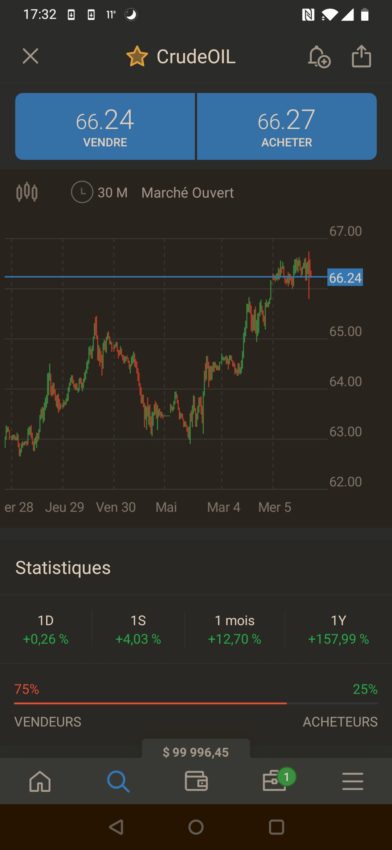 | Vente à Découvert | Oui (CFD) | Matières premières | 17 (CFD) |