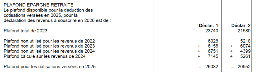 🚨 Bien sûr, cet avantage fiscal a ses limites : vous pouvez verser 10% de votre revenu imposable, avec un maximum de 37 094€. C’est le Plafond de l’Épargne Retraite. Ce plafond se cumule sur 3 ans et est indiqué sur votre relevé d’imposition.