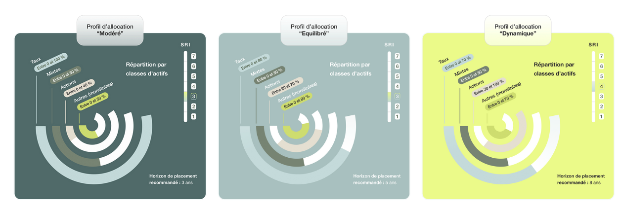 - aura une part d’actions qu’il peut aller jusqu’à 100% et qui ne passera jamais en dessous de 30%. Celui-ci est donc le plus risqué.