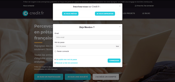 Créée en 2014, Credit.fr est une plateforme de prêts participatifs (ou crowdlending). Qu’est ce que cela veut dire concrètement ? Elle sélectionne des demandes de prêts de la part d’entreprises. Quand les critères sont remplis, le site Credit.fr présente le projet de la société emprunteuse à sa communauté. Les utilisateurs peuvent participer à partir de 50€ par projet, et jusqu’à 2 000€. En échange, des intérêts sont reversés aux utilisateurs (jusqu’à 8,50%).