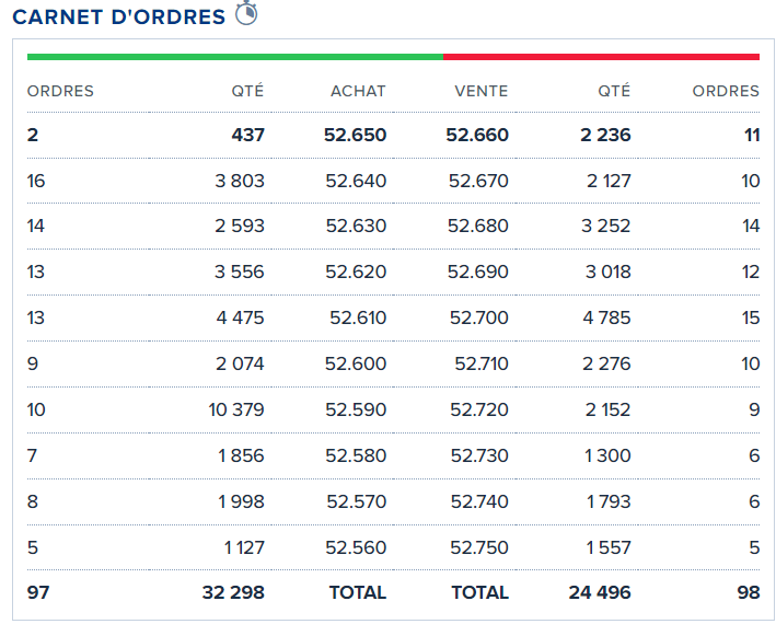 Pour ce faire, vous pouvez vous référer au carnet d’ordre et vérifier sa profondeur :