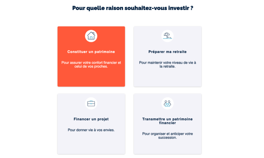 À l’issue de cette simulation, on m’a également proposé l’enveloppe fiscale la plus adaptée à mon projet (une assurance-vie en l’occurrence). Ensuite, je peux souscrire directement en ligne au produit de mon choix.