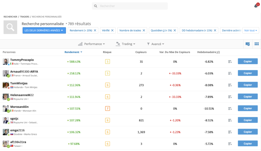 ➡️ C’est en apprenant des autres que vous pourrez petit à petit prendre vos propres positions sur les marchés financiers. Idéal donc, pour ceux qui débutent en bourse. Pour plus d’info, on vous donne notre avis complet sur eToro ici !